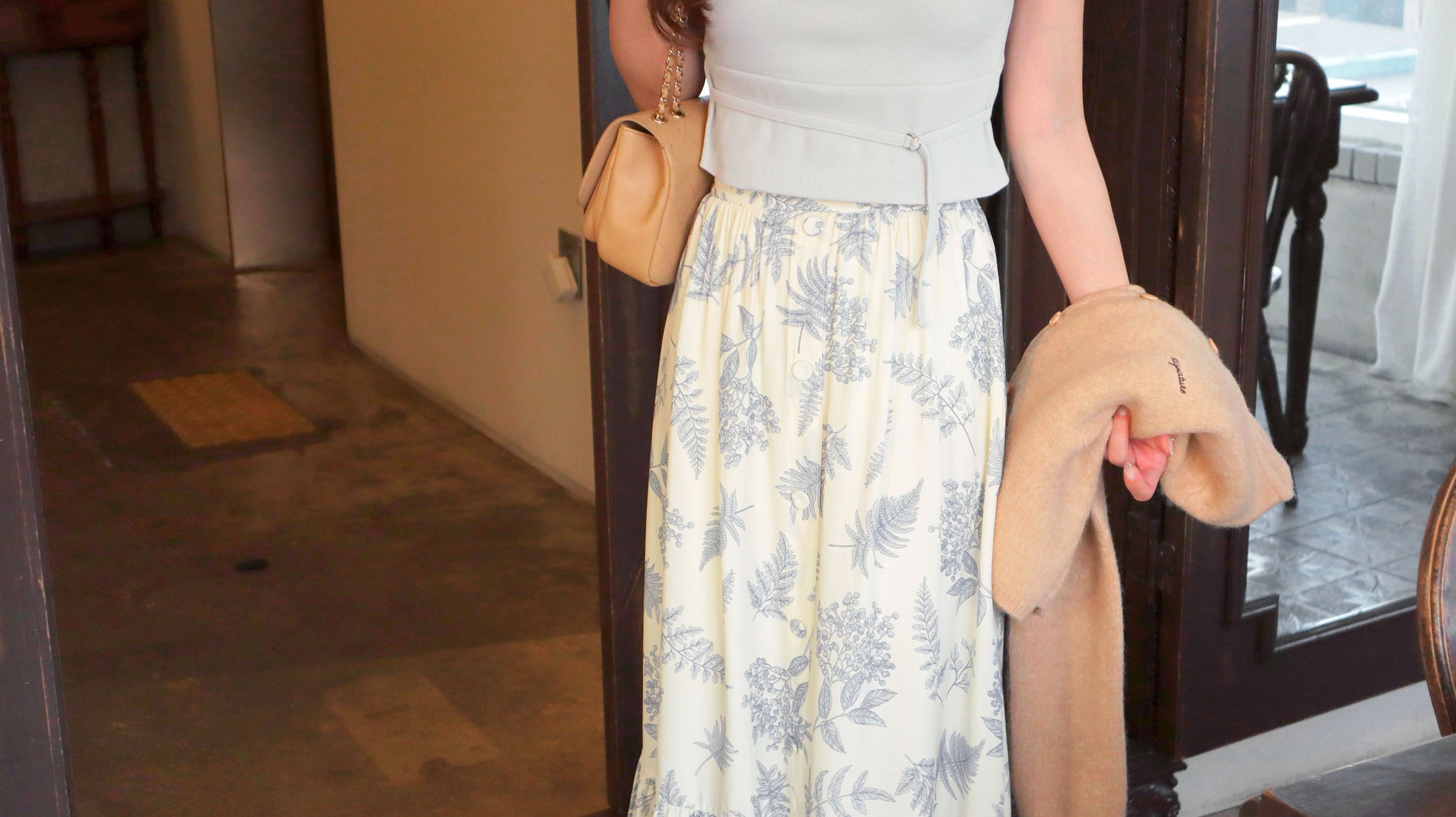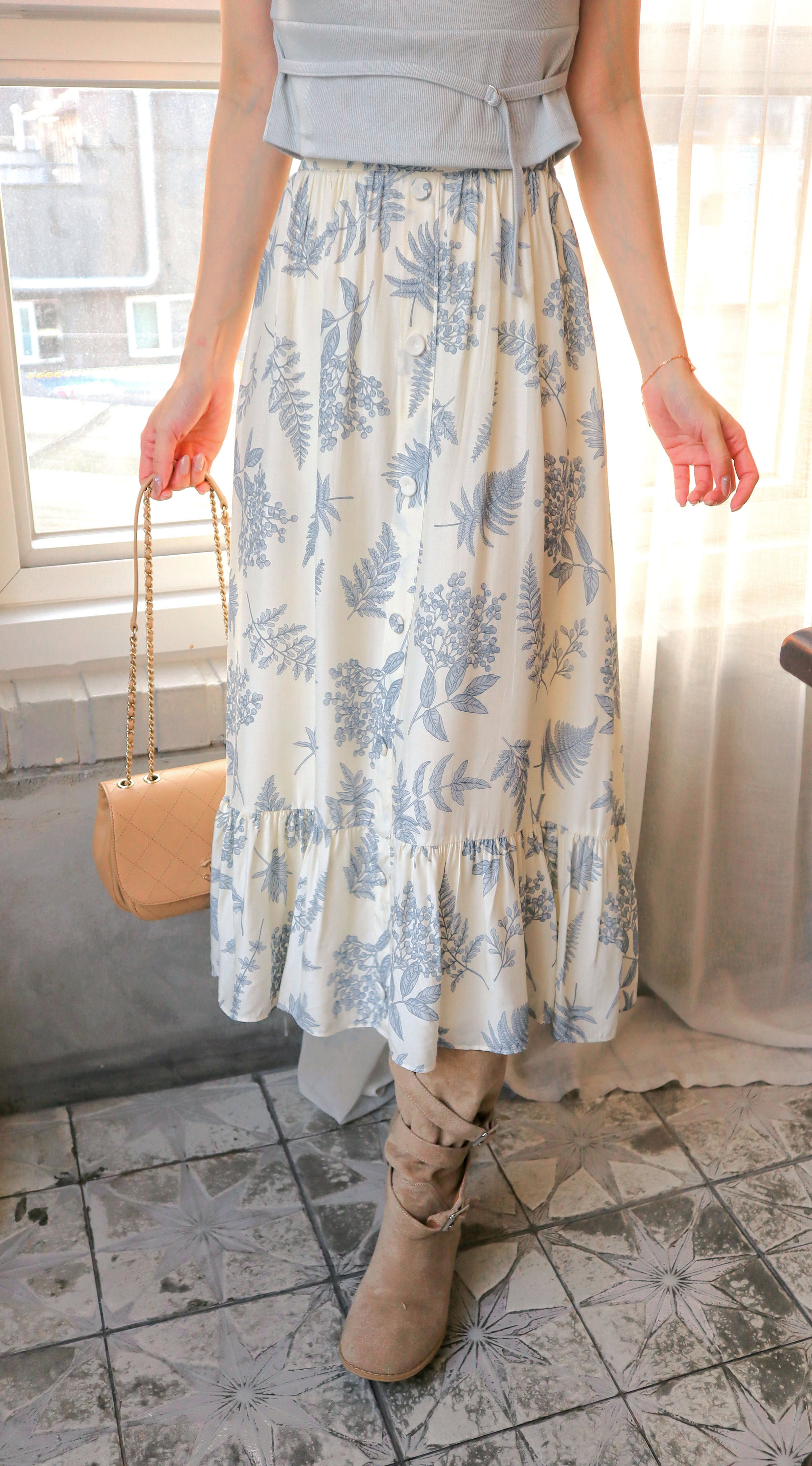 搭配米白的基底 讓整條裙子顯得更氣質亦不誇張庸俗