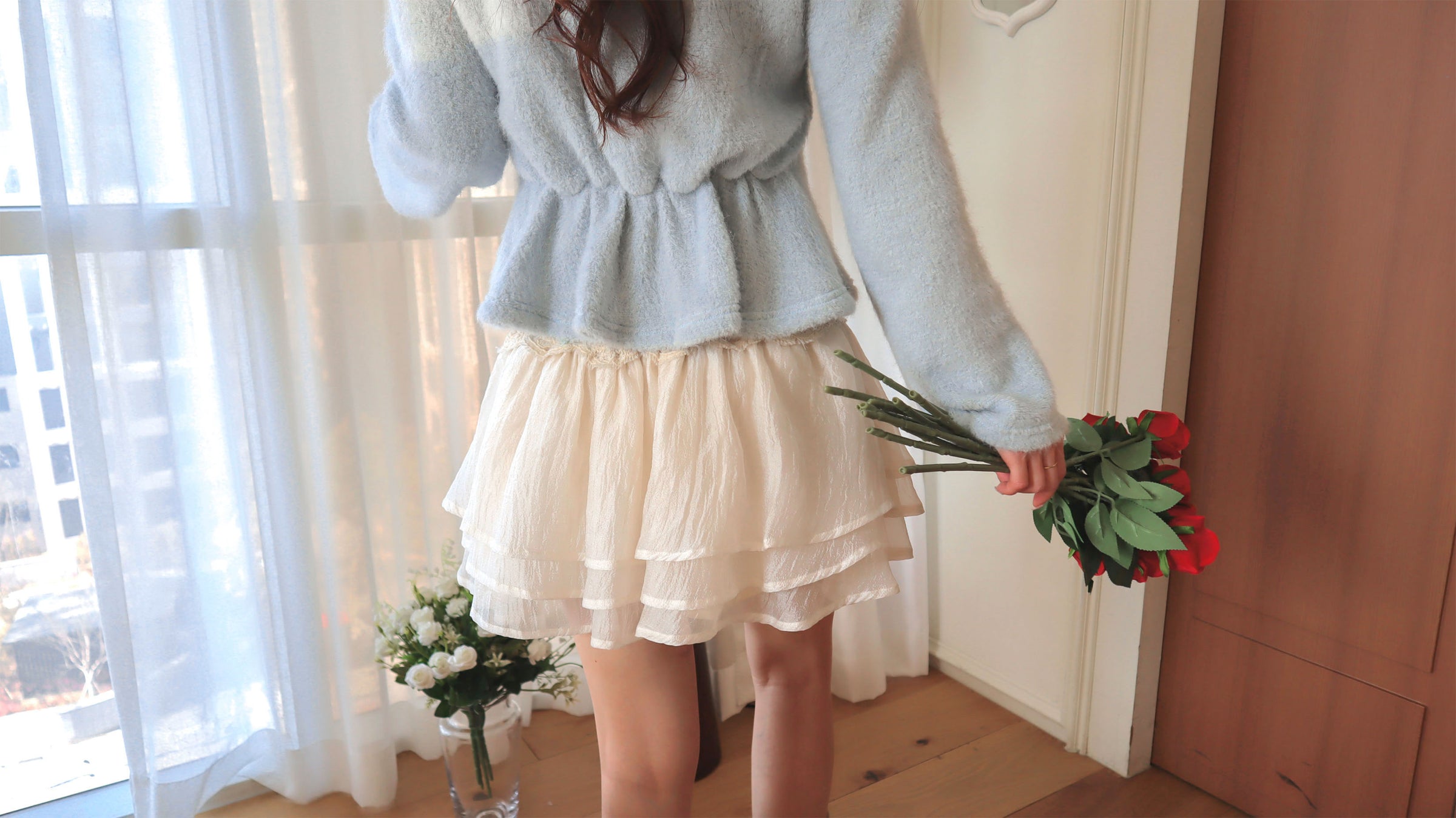 前幅衫腳沒有半點縮褶 但都保留了波浪感的小裙擺剪裁